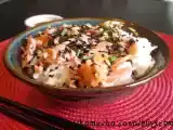 Ingrédients: Pour le riz vinaigré: 150 g de riz rond 250 mL d'eau froide 3 càs de vinaigre de riz blanc 3 càc de sucre en poudre 1 càc de sel fin Pour le...