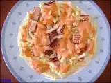 Ingrédients: 400 g de spaghetti 15 tomates cerises 80 g d'huile d'olive (50 g) 20 g de pignons 30 g de ricotta 25 g de parmesan 20 g de noix 50 g de pulpe de...