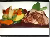 Ingrédients: Rôti de Porc au sirop d'érable : 1 petit rôti de porc environ 500 g 100 g de sirop d'érable sel poivre Pour la purée de céleri : 1 boule de céleri...