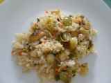 Ingrédients: 320 g de riz arborio 1 oignon 1 gousse d'ail 15 cl de vin blanc sec 3 tomates 1 dosette de safran 1 litre de bouillon de volaille préparé avec 2...