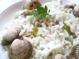Ingrédients: des coques un bouillon de légumes (du vert de poireau, un peu de céleri-branche et quelques carottes dans de l'eau bouillante) un risotto du blanc...