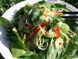 Salade de pâtes à la crème d'avocat, amandes et tomates cerises