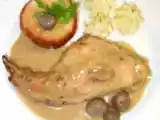 Ingrédients: 8 morceaux de poulet fond blanc de volaille Pour la sauce : 3 échalottes 2 pommes 50 ml de Calvados 200 ml de cidre 300 ml de crème épaisse 20 g...