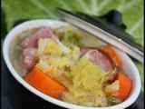 Soupe sucrée salée aux lentilles pommes et saucisse