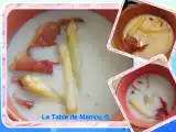 Ingrédients: 500 g d'asperges blanches 1 L de bouillon de volaille dégraissé (1 L d'eau et 1 cube de bouillon) Sel poivre 100 g de chanterelles 2 cuillères à...