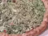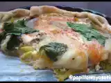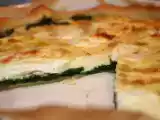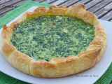 Ingrédients: 1 pâte feuilletée 300 g d'épinards 100 g de salade (feuilles de chêne) 150 g de philadelphia 3 oeufs 10 cl de lait 100 g de lardons sel et poivre