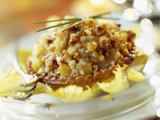 Ingrédients: 500 g de pâte brisée 500 g de pommes de terre 1 bouquet de ciboulette 1 noix de beurre Pour la pâte à crumble: 100 g de farine 100 g de beurre salé...