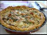 Ingrédients: 2 oeufs 1 boite de thon 1/2 poireau émincé 4 champignons frais émincés poivre une poignée de gruyère râpé 1 pâte feuilletée