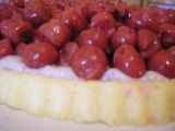 Ingrédients: Pour la pâte : 125 g de beurre fondu 250 g de farine 75 g de sucre 3 cuillères à soupe d'eau Pour l'appareil : 200 g de framboises 4 blancs d'oeufs...