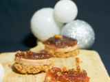 Toasts de fetes de noel : pain d'épices, confit d'oignons et chantilly de foie gras