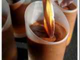Verrine de mangue, espuma pina colada, coulis de fruits de la passion