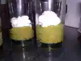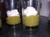 Verrines végétariennes: crème de petit pois, crumble de parmesan et crème au mascarpone