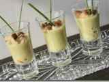 Ingrédients: 2 avocats mûrs 2 cuillère à soupe de crème fraiche épaisse Quelques gouttes de tabasco 6 bâtonnets de surimi Sel poivre Un peu de jus de citron jaune