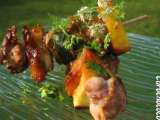 Brochettes d'agneau, aux pruneaux, aux abricots secs et romarin