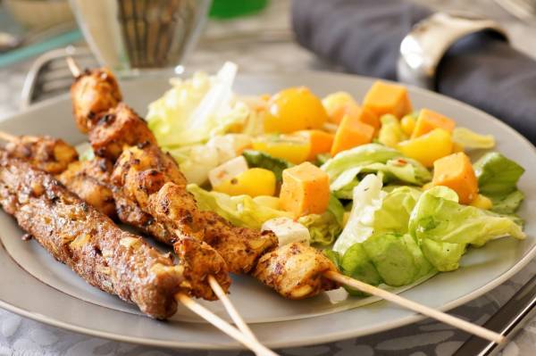Brochettes d'escalopes de dinde marinées au yaourt 0% et parfumées à l'estragon - recette lig