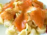 Ingrédients: -25o g d'orecchiette -100 g de Provolone piquant -20 cl de crème fraîche liquide à 15% de M.G -100 g de saumon fumé -1 petit bouquet de persil -2...